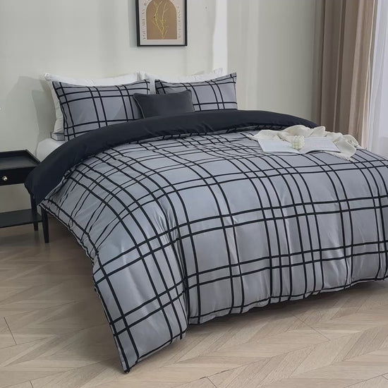 This reversible duvet set features an elegant grey and black design, giving you the freedom to switch between two chic styles. Both sides are plush, breathable, and perfect for creating a cozy, inviting bedroom atmosphere.